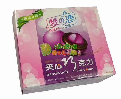 品 名:夢之戀軟糖夾心巧克力(葡萄味)70克 進口食品批發(fā)