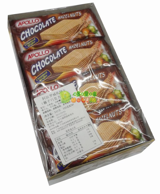 品 名:阿波羅威化餅干(榛子巧克力口味)312克 進口食品批發(fā)