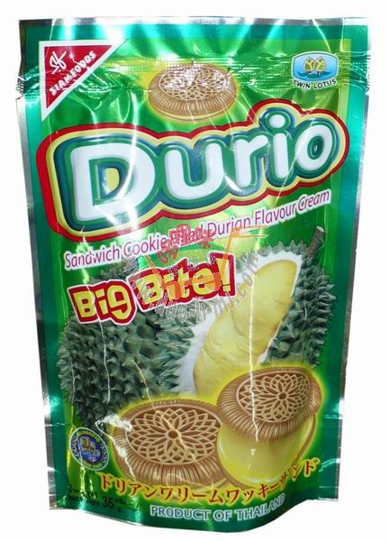 品 名:雙蓮花榴蓮味奶油夾心曲奇35克 進口食品批發(fā)