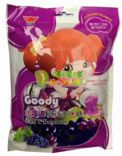 品 名:古迪北海道乳球夾心糖(葡萄味)180克 進口食品批發(fā)