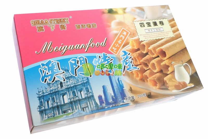 品 名:旗下街手工蛋卷(四寶)200克 進(jìn)口食品批發(fā)