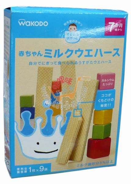 品 名:日本和光堂WAKODO牛奶威化薄餅9枚 進口食品批發(fā)