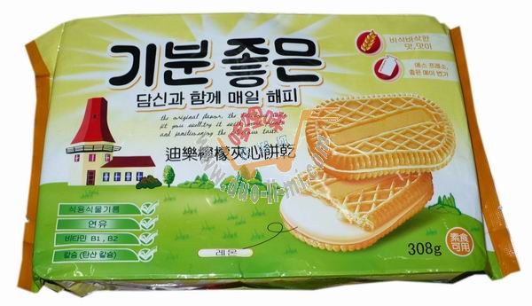 品 名:迪樂檸檬夾心餅308克 進口食品批發(fā)